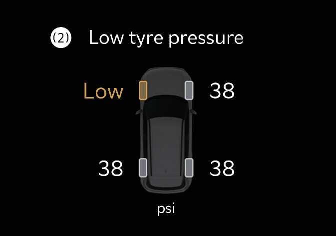 A low tyre pressure warning may sound when a tyre’s pressure unit is equal to or lower than the nearby tyres. This is normal operation due to the change in tyre pressure along with the tyre temperature.
