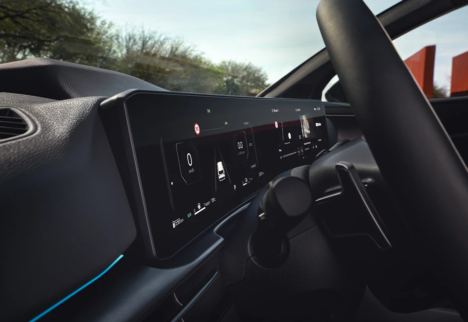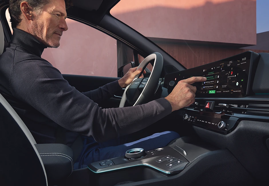 Die beiden gestochen scharfen Cockpit-Displays mit je 31,2 cm (12,3 Zoll) Diagonale fügen sich nahtlos zu einer leicht gewölbten Panoramafläche zusammen. Dadurch entsteht ein Seherlebnis, das im Vergleich zu klassischen Displays natürlicher und entspannter wirkt. Die hochauflösenden LCD-Anzeigen lassen sich bei allen Lichtverhältnissen präzise ablesen – für eine rundum entspanntere Fahrt.