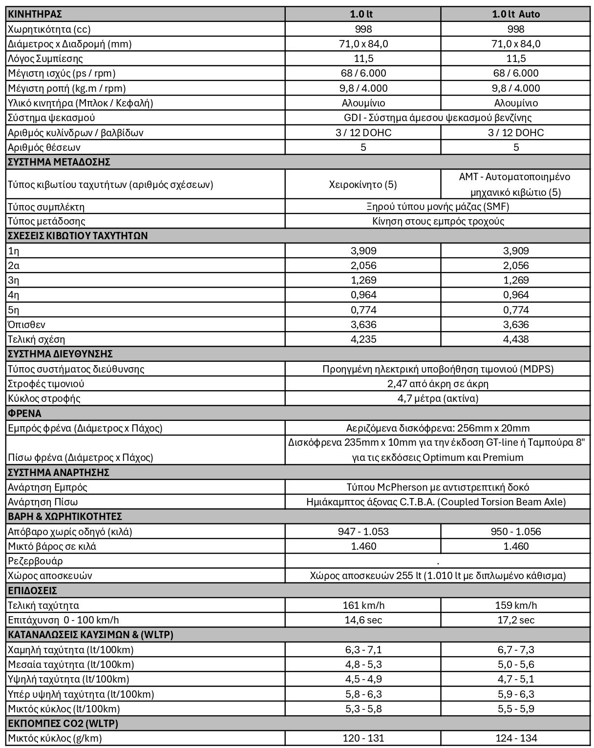 | ISG (Idle Stop & Go) Σύστημα εξοικονόμησης καυσίμου | ✔ | ✔ | ✔ | |