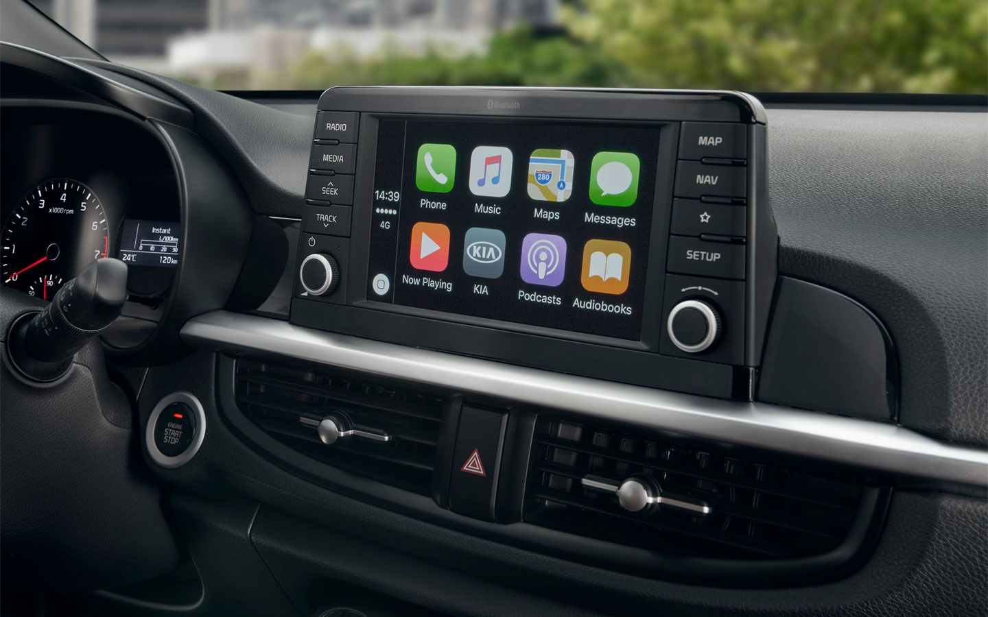 The all-new Kia Picanto features compatibility with Android Auto™, designed to work with Android phones running 5.0 (Lollipop) or higher. Compatibility with Apple CarPlay™ is available in the all-new Kia Picanto for iPhone 5 or newer models. Both systems feature voice control and allow the driver to keep their hands on the wheel and eyes on the road ahead at all times. Android Auto™ and other marks are trademarks of Google Inc., while Apple CarPlay™ is a trademark of Apple Inc.