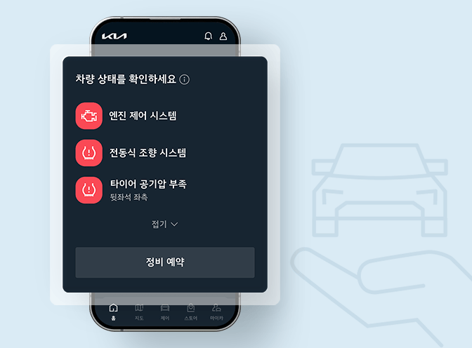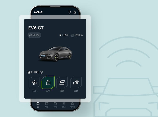 차량이 어디에 있든 Kia App에서 자유롭게 컨트롤해요.